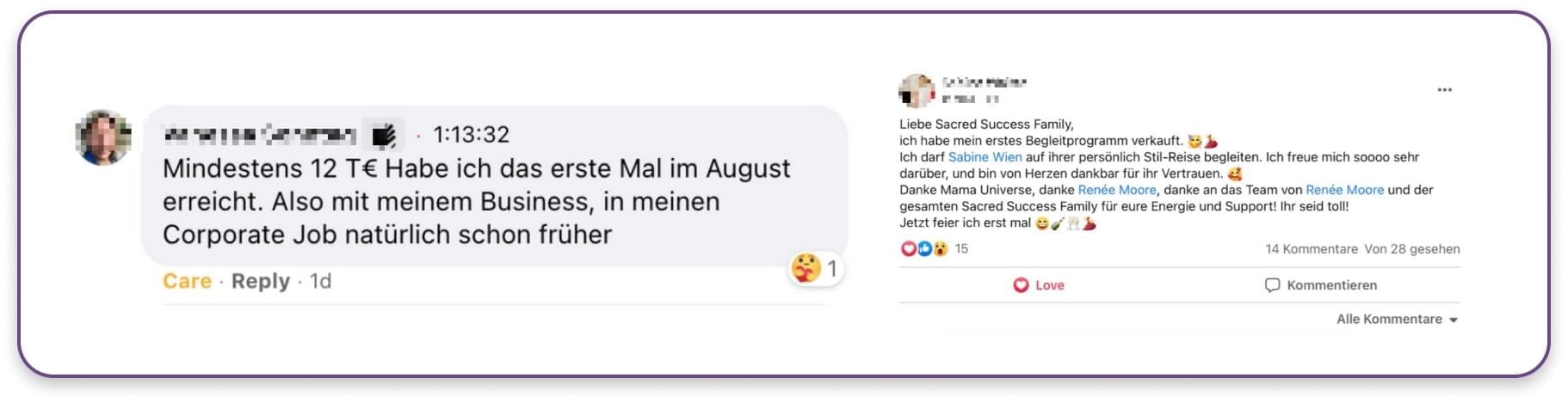 Lösung: Traut sich sichtbar zu werden, Vorträge zu halten und hat ihren eigenen Wert erkannt. Sie zieht ihre Soul-Clients an und erzielte einen Gewinn von 50.000 €!